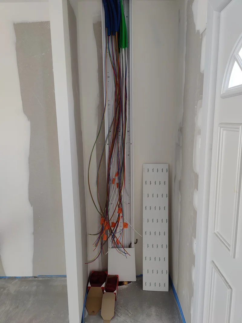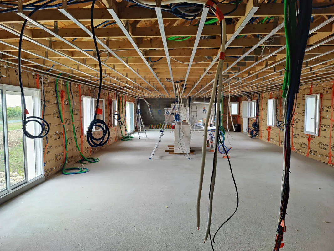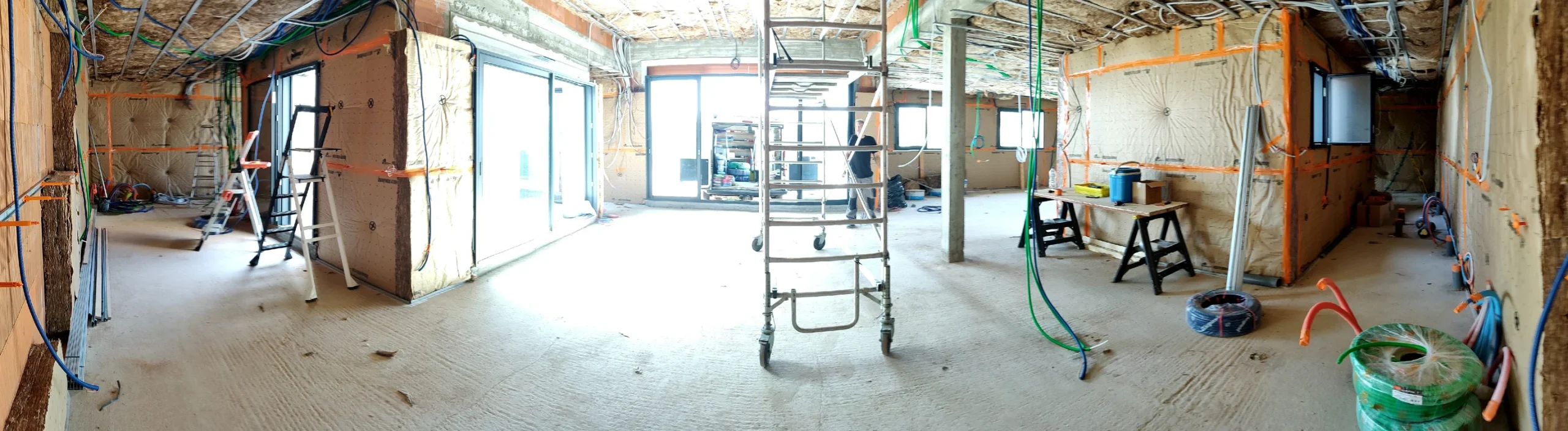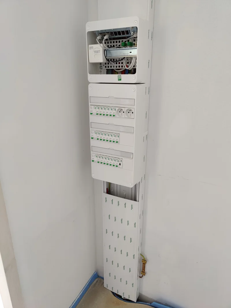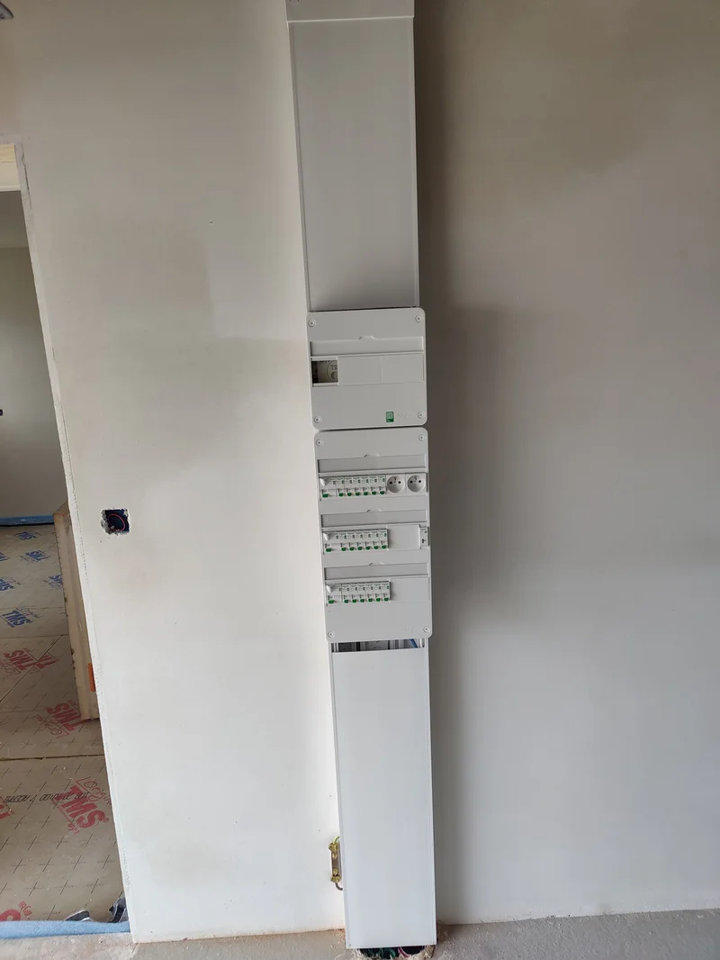 - Installation complète du réseau électrique, tableaux de répartition, et coffrets de communication.